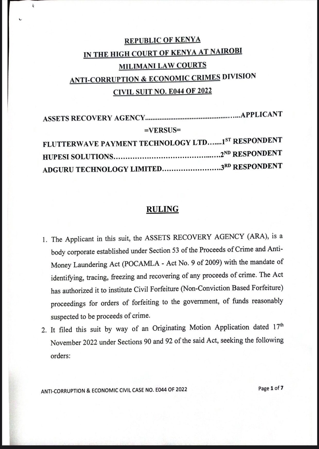 Judge Nixon Sifuna of the Kenyan High Court in Nairobi, has denied the Kenyan Asset Recovery Agency's (ARA) plea to dismiss its case against African fintech giant Flutterwave.
