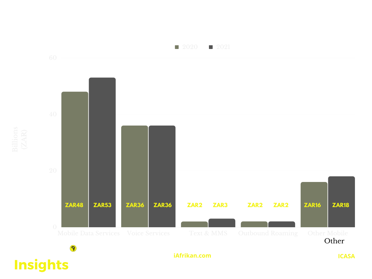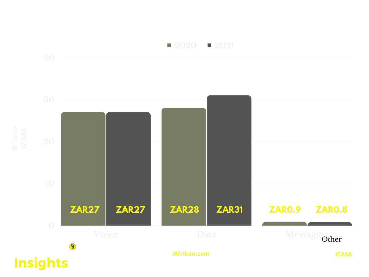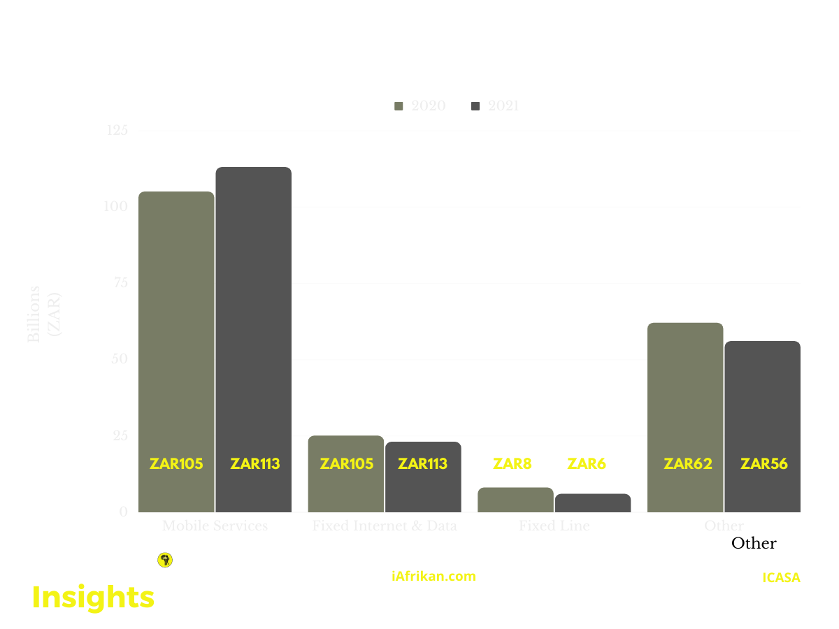 Total telecommunications revenue in South Africa fell by 0,5% for the reporting period of 2021, falling from R201 billion in 2020 to R200 billion in 2021.